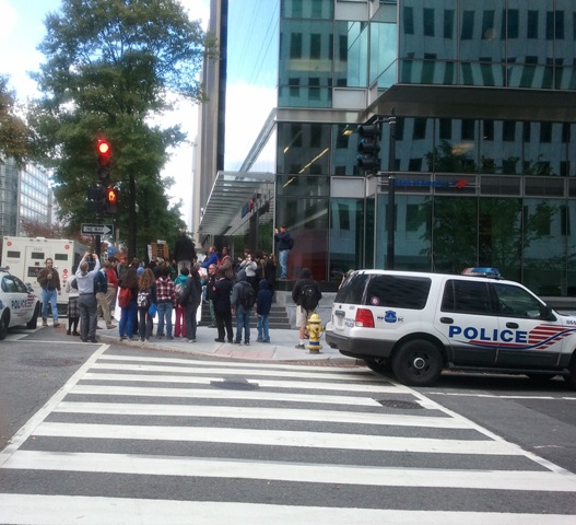 One lesson for me is that it doesn't take many people to create public visibility. Even in DC where the two encampments aren't as large as those in NYC or Boston they can have effective public actions to remind people that there is resistance. Also, there may be much more support than there seems to be at first. This is important to keep in mind as we move toward the winter months. We can keep the public visibility of the movement with relatively few people. I am envisioning the winter being spent doing lots of organizing and study groups, but with periodic--even daily--public actions like this to keep it in the public eye and keep generating support.