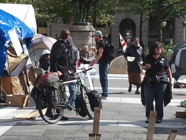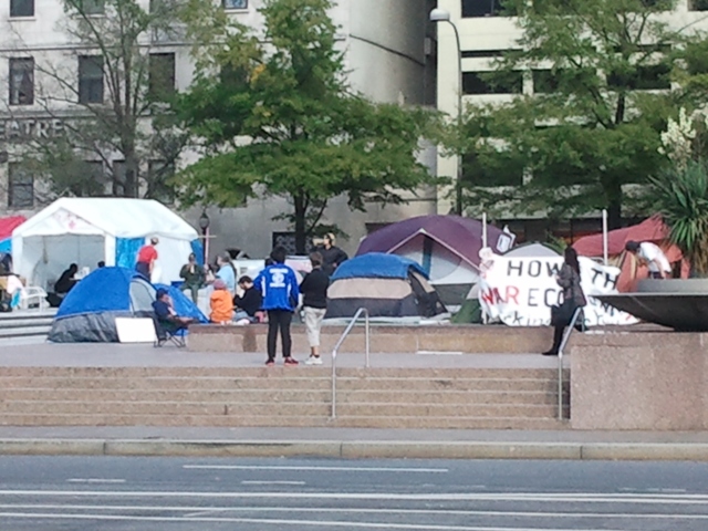 But I had a nice chat with a woman from California wearing a Veterans for Peace shirt who was camping out there. See below--she's on the right.