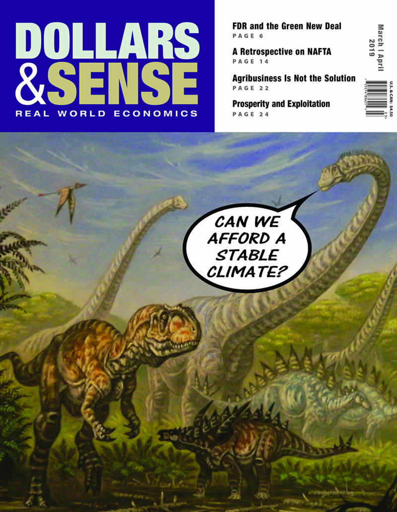 Our March/April issue is out--sent to e-subscribers last week and en route to print subscribers now. We have posted the issue's cover story, Can We Afford a Stable Climate?, by Frank Ackerman. (Thanks to D&S collective member Jeanne Winner for the cover concept, which perfectly frames the humor in Frank's title.)